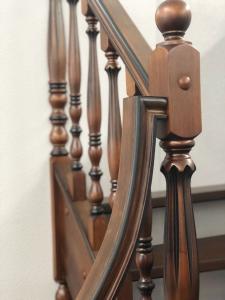 В коттеджах или квартирах редко используют перила из металла, только в качестве декоративных кованных элементов. В основном применяют дерево. Обычно это круглые или квадратные перила с фигурными балясинами. Само дерево имеет эстетический вид, по экологическим стандартам является практически самым безопасным сырьем и, кроме того, оно теплое, в отличии от металла, который быстро остывает.