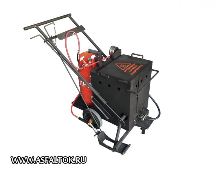ПКЗ-55 - это портативный ручной заливщик швов битумными материалами, применяемый в дорожном строительстве и ремонте. Он представляет собой сварную металлическую раму на трёх обрезиненных стальных колёсах (одно переднее поворотное и два задних неповоротных), с установленным на ней бункером. Внутренний бункер заливщика оборудован механическим ворошителем (для перемешивания материала) и краном-дозатором (для подачи разогретого материла наружу). Количество подаваемого материала регулируется открыванием заслонки крана-дозатора при помощи рычага. Расплавленный материал подается в каретку, которая опускается в рабочее положение рычагом опускания каретки и скользя по плоскости дорожного покрытия заглаживает шов. Регулятор давления газа и термометр, позволяют контролировать температуру материала и избегать его перегрева. Система подачи газа проста в монтаже и использовании. Непрямая система нагрева бункера (через стальную плиту и воздушную рубашку), позволяет обеспечивать равномерный нагрев материала и исключает его пригорание. Дополнительная горелка позволяет подогревать каретку и избегать «наматывания» на неё используемого материала. ПКЗ-55 является маневренным и удобным в эксплуатации одним человеком, не требует специальной квалификации рабочего персонала при эксплуатации, имеет продолжительный срок службы, легко транспортируется и позволяет существенно экономить используемые материалы.