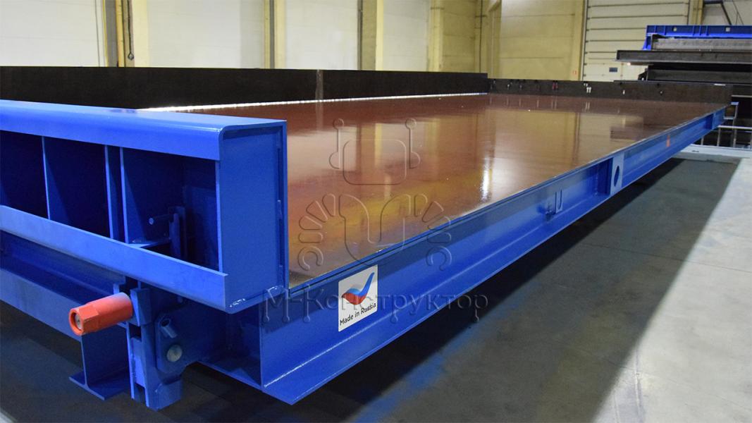 Допустимая нагрузка на стол – 1000 кг/кв. м. Поверхность стола выполнена из высокопрочной стали толщиной 10 мм, ширина поверхности может достигать 4 м, длина 12 м.