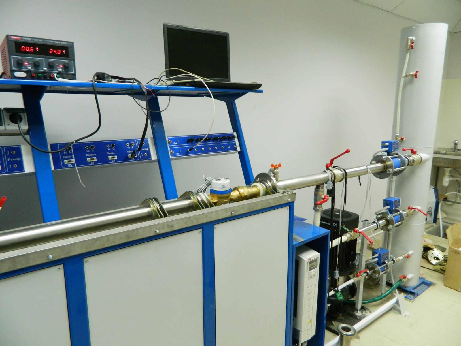 установкой ВПУ-Энерго-1 расход – от 0,02 до 60 куб.м/ч - позволяет организовать поверку и регулировку большинства типоразмеров общедомовых водо- и теплосчетчиков. Габаритные размеры установки уточняются исходя из реальных габаритов помещения Заказчика. Для организации комплексной поверки теплосчетчиков в состав лаборатории при необходимости включаются калибраторы электрических сигналов, температуры, давления.