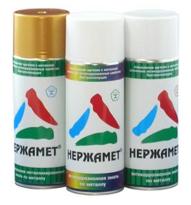 Аэрозольная краска «Нержамет» – это быстросохнущая эмаль по металлу, упакованная в специальную емкость (баллончик) под давлением. Данная упаковка обеспечивает удобство использования краски без применения специальных приспособлений.
