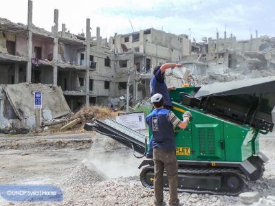 От военных действий массово пострадала инфраструктура во всех сирийских городах. Там, где ещё совсем недавно происходили вооружённые столкновения, теперь, в соответствие Программе развития Организации Объединённых Наций, работает более десятка дробильно-сортировочных машин KOMPLET. При помощи различной техники перерабатывают куски стен, колонн, бетона разрушенных домов, мусор, разбросанный на улицах. Города приступают к строительству новых жилых домов, школ и больниц и других инфраструктурных объектов.