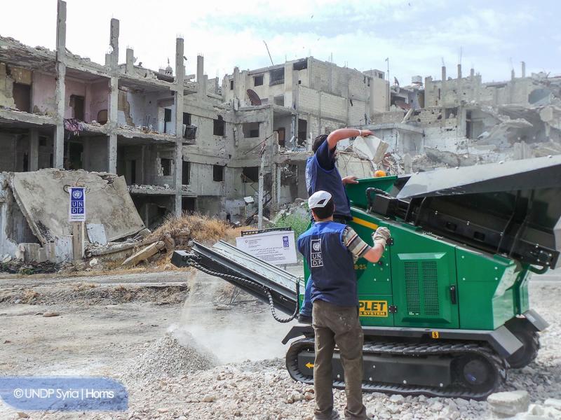 KOMLET в Сирии по Программе развития ООН. Жители Сирии после многочисленных разрушений расчищают завалы и заново отстраивают дома.