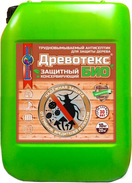 Древотекс Био – трудновымываемый состав с антисептическим действием, который защищает древесину от насекомых, плесени, гнили, грибковых инфекций. Активная защита обеспечивается даже при повышенной влажности воздуха и температурных перепадах.