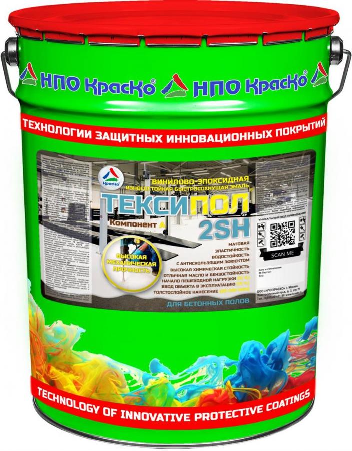 Линейка продукции для покраски пола от компании КрасКо пополнилась еще одной краской на основе модифицированной высокомолекулярной эпоксидной смолы. Тексипол 2SH может использоваться как самостоятельное покрытие без предварительного грунтования бетонного пола. Однако для достижения более высокой степени прочности рекомендуется применение в комплексе с грунт-пропиткой Эпоксол, особенно, если поверхность пола пористая, с повышенным образованием пыли или бетон имеет влажность до 10%.